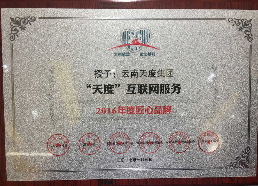 天度集團(tuán)榮獲“2016云南匠心品牌”稱號(hào)