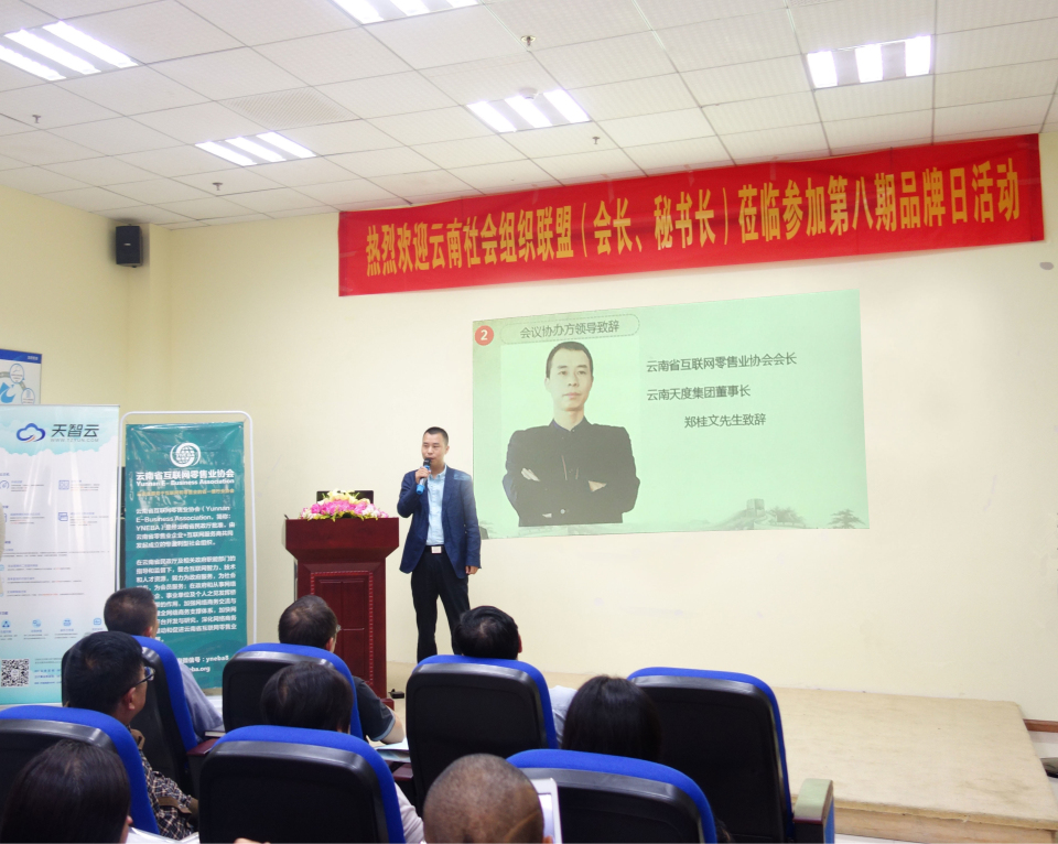 云南省互聯(lián)網(wǎng)零售協(xié)會(huì)會(huì)長(zhǎng)、云南天度集團(tuán)董事長(zhǎng)鄭桂文先生開(kāi)場(chǎng)致辭
