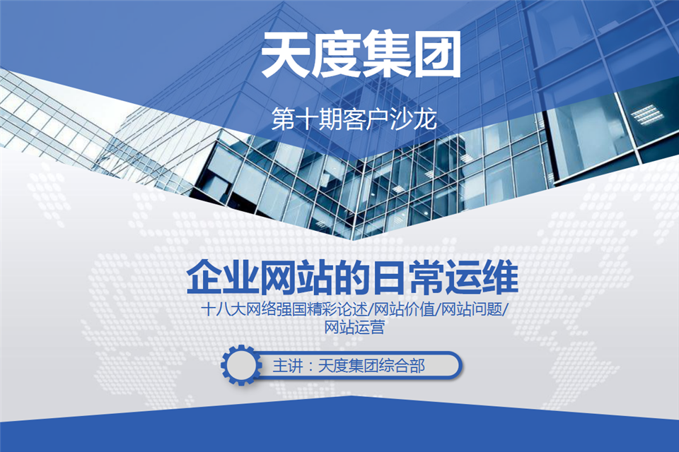 企業(yè)網(wǎng)站建設(shè)是企業(yè)文化的組成部分,對企業(yè)形象的建立和企業(yè)知名度的提高起著至關(guān)重要的作用,是企業(yè)實現(xiàn)”互聯(lián)網(wǎng)+“產(chǎn)業(yè)轉(zhuǎn)型的重要手段。建一個網(wǎng)站,對于大多數(shù)人并不陌生。尤其是已經(jīng)擁有自己網(wǎng)站的企業(yè)和機構(gòu)。但是提到網(wǎng)站運營可能特別多人不理解,對網(wǎng)站運營的重要性也不明確,通常被忽視。故此天度集團專門針對“企業(yè)站的日常運維”展開了第十期客戶沙龍。