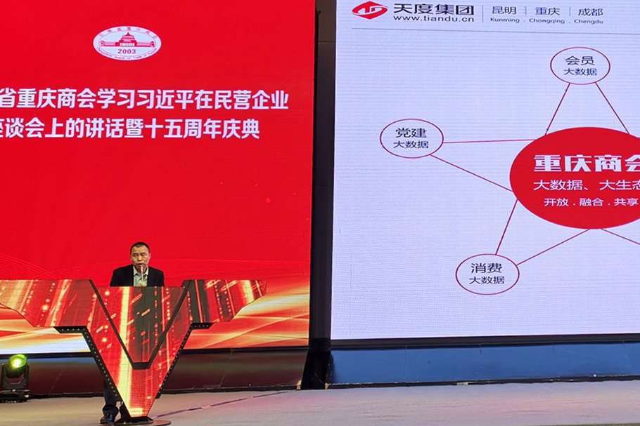 2018年12月21日下午,云南省重慶商會在云安會都國際會議中心隆重舉行主題為《云南省重慶商會學習習近平總書記在民營企業(yè)座談會上的講話暨十五周年》活動,云南省人民政府副省長王顯剛,云南省政協(xié)副主席、省工商聯(lián)主席喻頂成等領導出席了會議,天度集團董事長鄭桂文現(xiàn)場對“商會大數(shù)據(jù)”建設情況進行介紹并出席了大數(shù)據(jù)平臺啟動儀式。