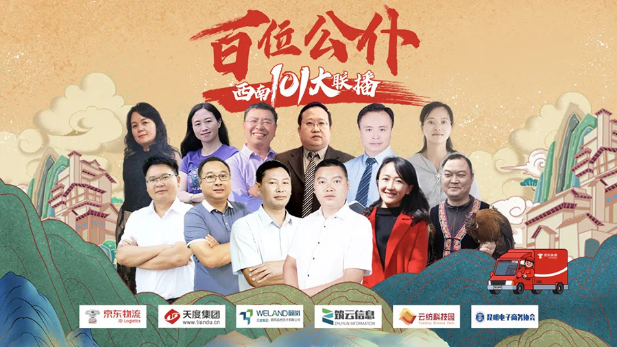 “百位公仆,西南101大聯(lián)播”大型助農(nóng)直播活動(dòng)由京東物流主辦,天度集團(tuán)-云南蔚嵐信息技術(shù)有限公司、云南筑云信息產(chǎn)業(yè)有限公司承辦,云南云紡科技產(chǎn)業(yè)園有限公司、昆明電子商務(wù)協(xié)會(huì)協(xié)辦。