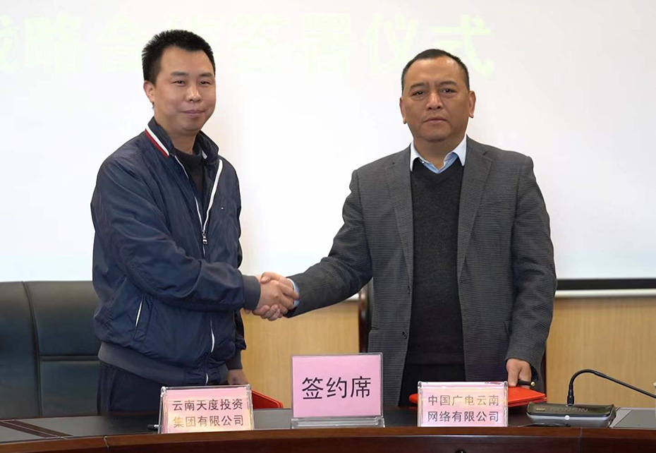 2月17日上午,中國廣電云南網(wǎng)絡(luò)有限公司與云南天度投資集團(tuán)有限公司《戰(zhàn)略合作協(xié)議》簽署儀式在中國廣電云南網(wǎng)絡(luò)有限公司總部A座19樓舉行,雙方將在“文化固邊、電商興邊”、數(shù)字化服務(wù)及直播電商等新業(yè)態(tài)、新領(lǐng)域展開全面深入合作。中國廣電云南網(wǎng)絡(luò)有限公司總經(jīng)理趙聯(lián)濤,云南天度投資集團(tuán)有限公司董事長鄭桂文分別代表雙方簽署協(xié)議。