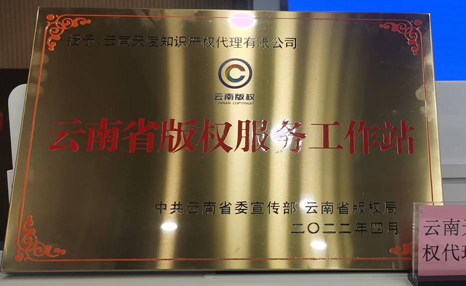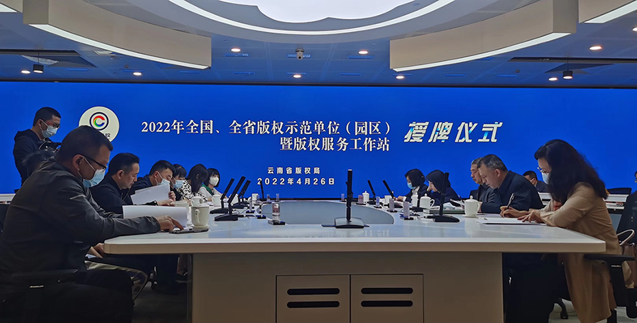 2022年全國、全省版權示范單位(園區(qū))暨版權服務工作站授牌儀式今日舉行,云南天度知識產(chǎn)權代理有限公司等10家企業(yè)獲的“云南省版權服務工作站”授牌。
