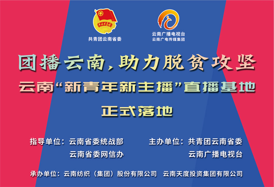 本次活動由共青團(tuán)云南省委、云南廣播電視臺主辦,在云南省委統(tǒng)戰(zhàn)部新的社會階層人士工作處、云南省委網(wǎng)信辦社會工作處等相關(guān)部門領(lǐng)導(dǎo)及云紡集團(tuán)、云南天度集團(tuán)、云南蔚嵐電子商務(wù)、抖音昆明城市經(jīng)理等相關(guān)企業(yè)及平臺負(fù)責(zé)人、MCN機(jī)構(gòu)、50多名青年主播的共同見證下,“團(tuán)播云南”直播基地、云南新青年新主播直播基地正式開播。