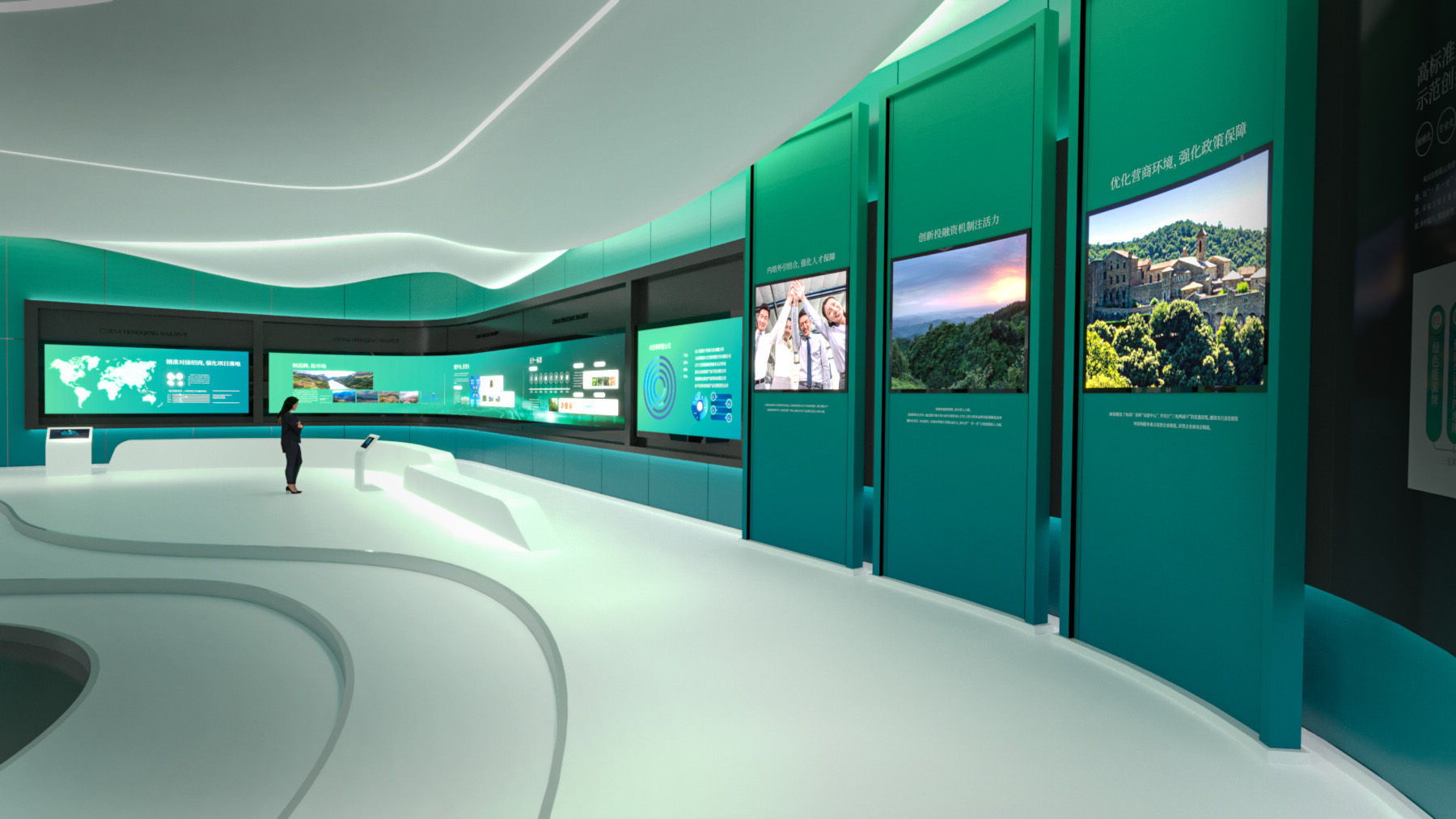 數(shù)字沙盤的運(yùn)用能夠?qū)⑵髽I(yè)的空間布局和發(fā)展規(guī)模都生動(dòng)形象的表現(xiàn)出來,能夠讓觀眾一目了然,展示效果直觀有震撼力。數(shù)字展廳要傳達(dá)什么內(nèi)容和信息,需要通過鮮明的主題來展示給觀眾,因此,在進(jìn)行展廳設(shè)計(jì)之前,必須對主題定位準(zhǔn)確,通過相應(yīng)的焦點(diǎn),再配合適當(dāng)?shù)纳?、圖標(biāo)與裝飾,以協(xié)調(diào)一致、突出重點(diǎn)的方式來達(dá)到傳遞;設(shè)計(jì)材質(zhì)選擇時(shí)不宜太過于古板,也不適合選擇過于跳躍性的顏色,無論是顏色抑或是數(shù)字展廳主要材質(zhì)都要讓人感覺到大氣、高雅、莊重,因此要選擇合適的顏色來裝飾展廳;設(shè)計(jì)可以靈活運(yùn)用多媒體展項(xiàng),靈活運(yùn)用各類多元化的展示技術(shù),采用聲光電結(jié)合硬裝造型來提升參觀者體驗(yàn),避免枯燥乏味傳統(tǒng)展廳展示形式,影響整體品位和形象。