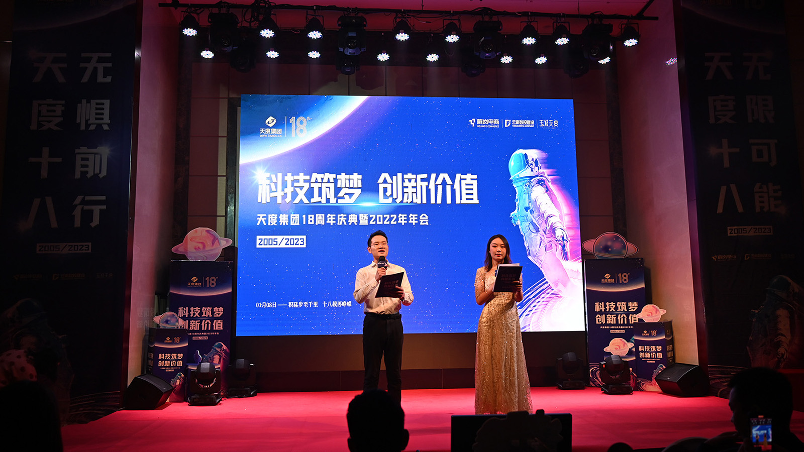 2023年1月8日,科技筑夢(mèng)·創(chuàng)新價(jià)值—天度集團(tuán)18周年慶典暨2022年年會(huì)在西南賓館圓滿落幕,集團(tuán)及各公司同仁齊聚一堂,共慶天度集團(tuán)發(fā)展成果,共享年會(huì)歡樂時(shí)光!