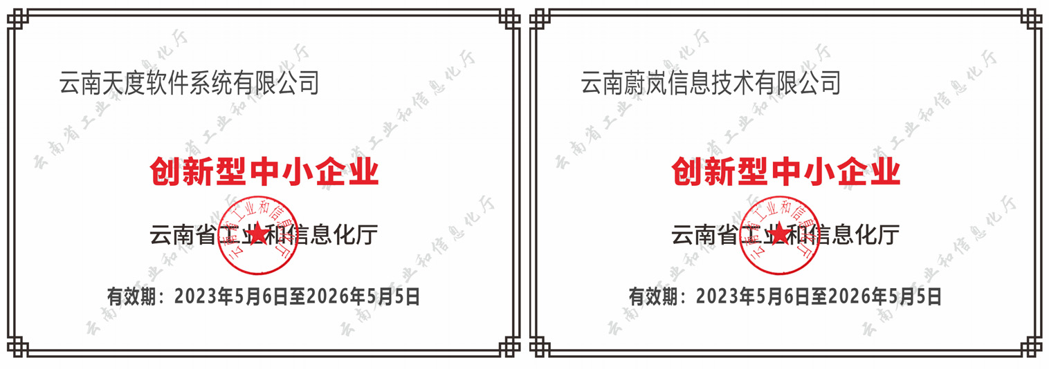 天度軟件入選云南省專精特新中小企業(yè)、創(chuàng)新型中小企業(yè)、國(guó)家科技型中小企業(yè)名單