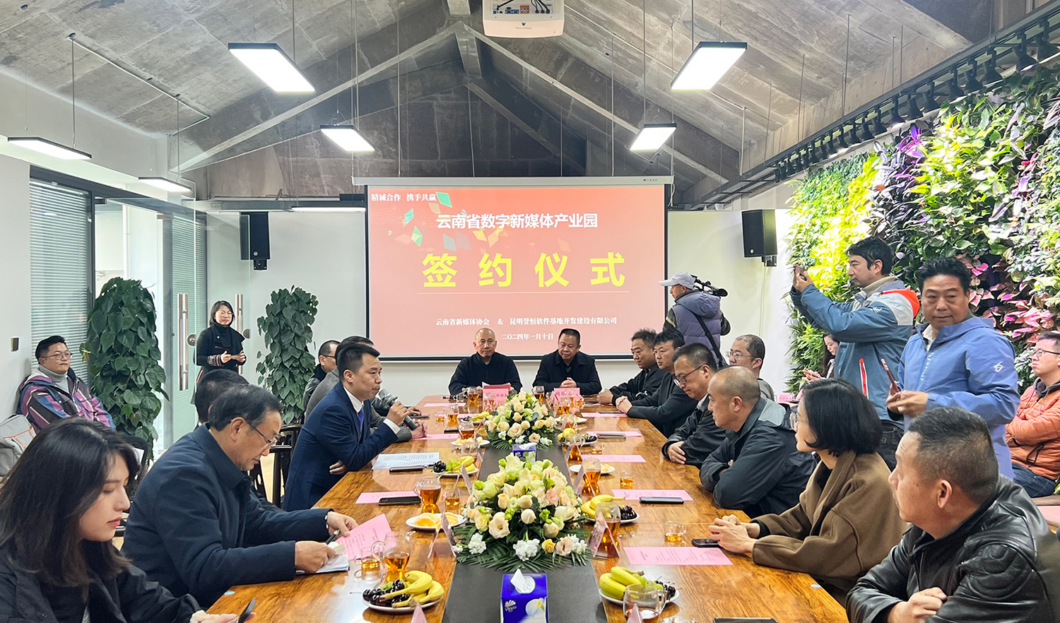 2024年1月10日下午,云南省新媒體協(xié)會(huì)會(huì)長(zhǎng)鄭桂文與昆明譽(yù)恒軟件基地開發(fā)建設(shè)有限公司董事長(zhǎng)周曉東在昆明經(jīng)開區(qū)簽訂《合作協(xié)議》,雙方將共同建設(shè)運(yùn)營(yíng)“云南省數(shù)字新媒體產(chǎn)業(yè)園”,合力打造7.6萬(wàn)平方米規(guī)模的數(shù)字新媒體產(chǎn)業(yè)集聚區(qū)、生態(tài)區(qū)、服務(wù)區(qū)。